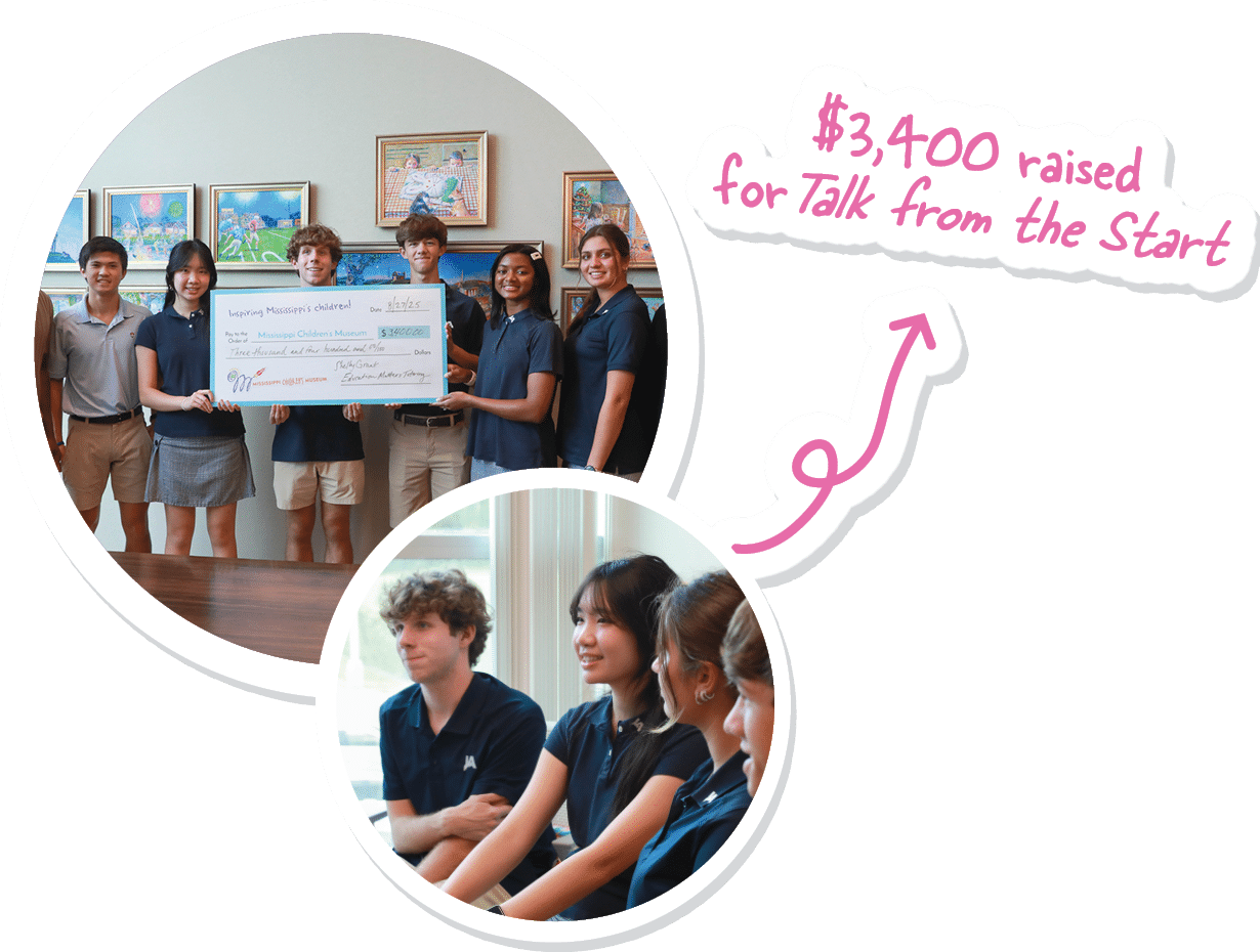 The Mississippi Children’s Museum partners with volunteer groups like the President’s Leadership Circle (PLC) to advance its mission and vision. This youth program builds leadership, service, and college readiness. PLC Senior Mentor and Community Engagement Lead, Shelby Grant, founded Education Matters Tutoring, providing free educational support to local elementary students. Through this organization, Grant and his team raised $3,400 for MCM’s Talk from the Start initiative to strengthen childhood literacy.